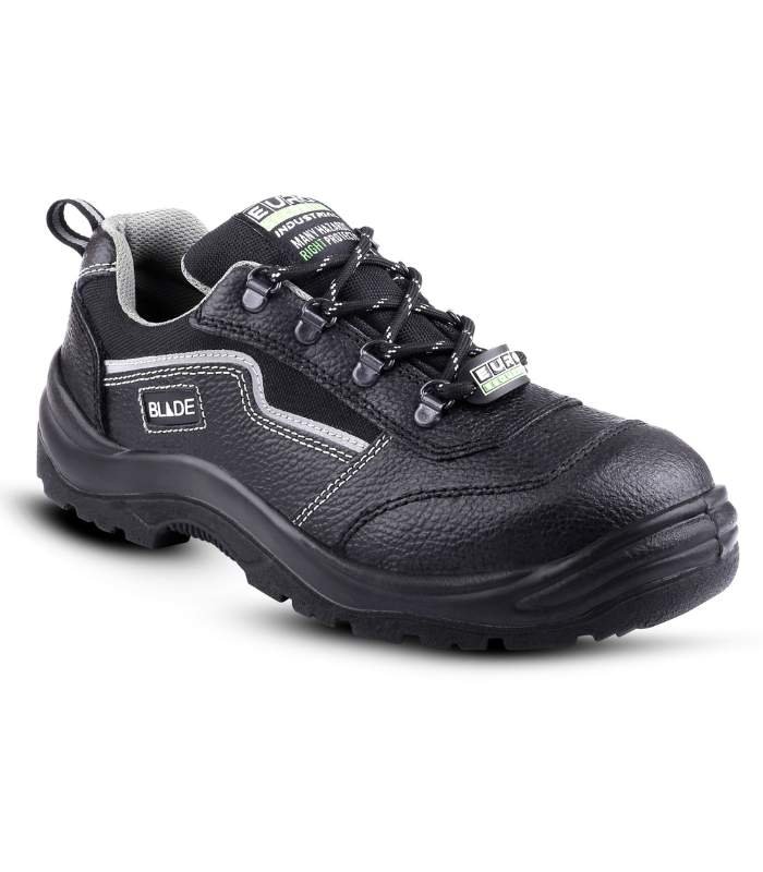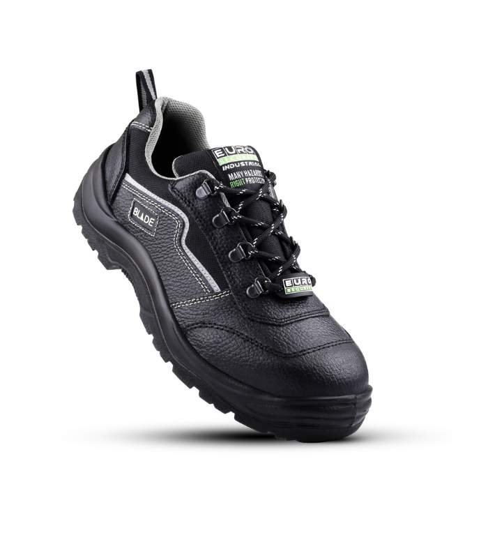 The Euro Security Blade S1 Safety Shoe is designed to provide superior protection, comfort, and durability for professionals working in high-risk environments. Featuring a elegant low-cut design with leather upper, this shoe offers a sleek yet highly protective design. The leather is oil and fuel resistant, ensuring long-lasting wear and durability in industries where exposure to hydrocarbons is common. The single density PU sole provides support and stability, reducing the risk of injuries while offering a secure fit.